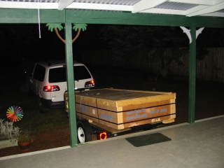 Porch becomes workshop -- I had to revamp the back porch in preparation for the big build. New plastic on the roof, chipboard to cover the deck boards, an 8x10ft extension to accommodate the bow and new paint everywhere. This was in addition to regular maintenance, reshaping and widening the front driveway, making the gravel parking pad Jumbo size and of course the required honey-dos. |