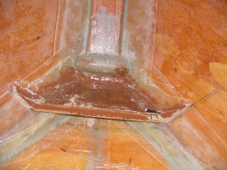 | The bottom pan is gooed and glassed. Black carbon fiber tubes are glassed into the holes. |